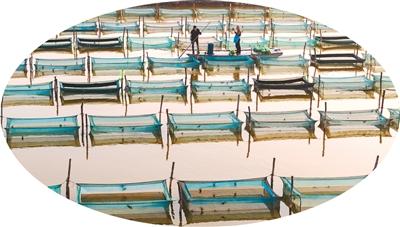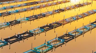 成群的白鹭被吸引而来,时而立于网箱杆上,时而在水面上飞翔。水塘之中,养殖生产与自然生态和谐相映,构成一幅生动的冬日田园图景。