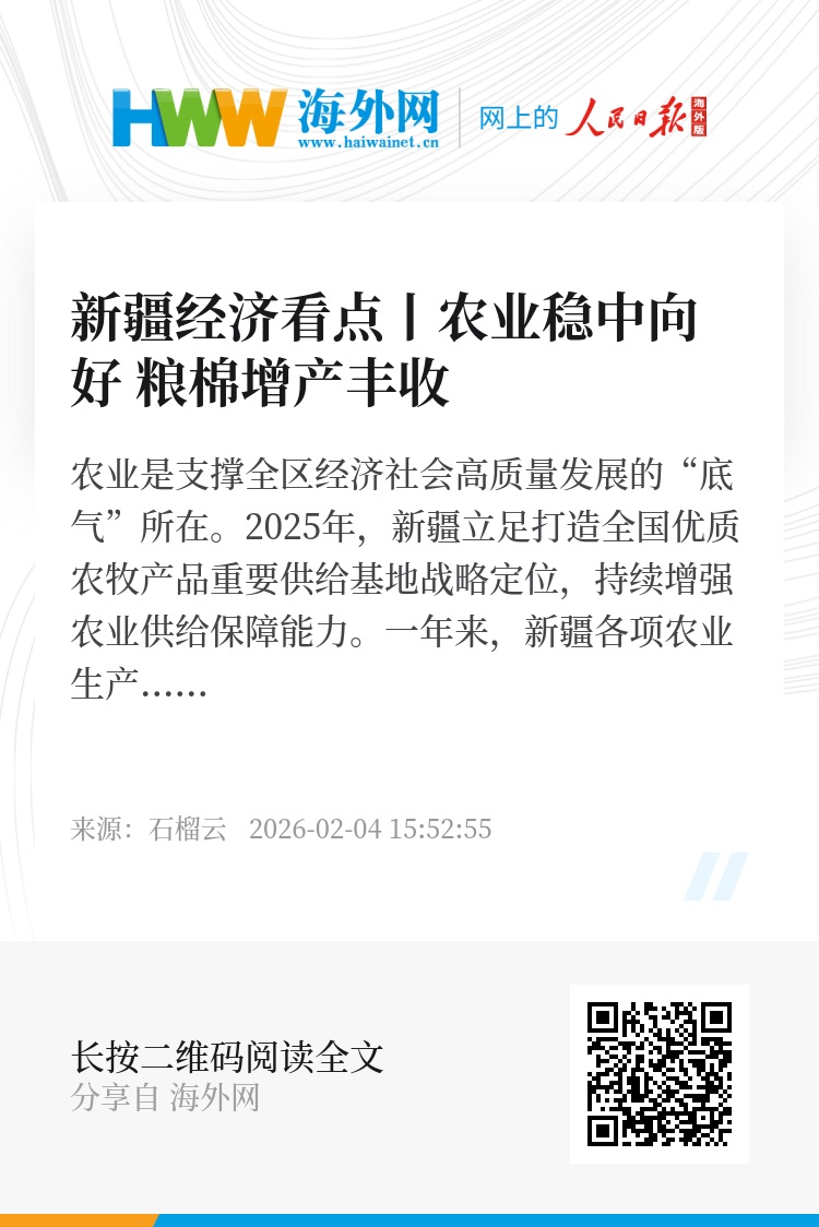 农业是支撑全区经济社会高质量发展的“底气”所在。2025年,新疆立足打造全国优质农牧产品重要供给基地战略定位,持续增强农业供给保障能力。