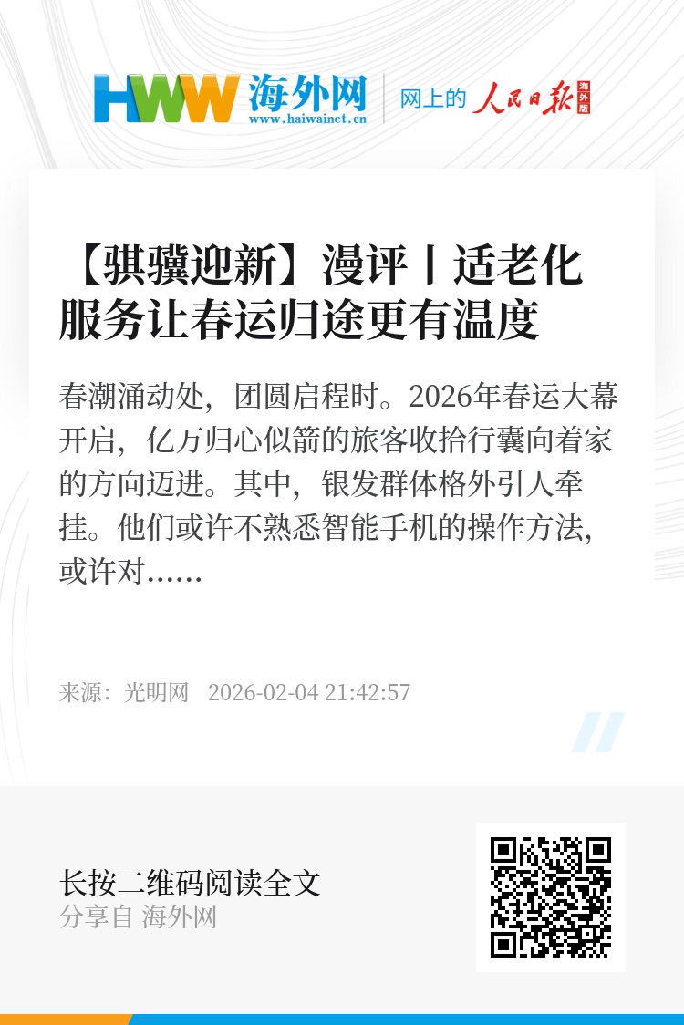 春运是社会文明的一面镜子。期待更多行业将适老化理念融入日常,用细节关怀每一位老人,让社会发展的温度照亮每一段团圆之路。