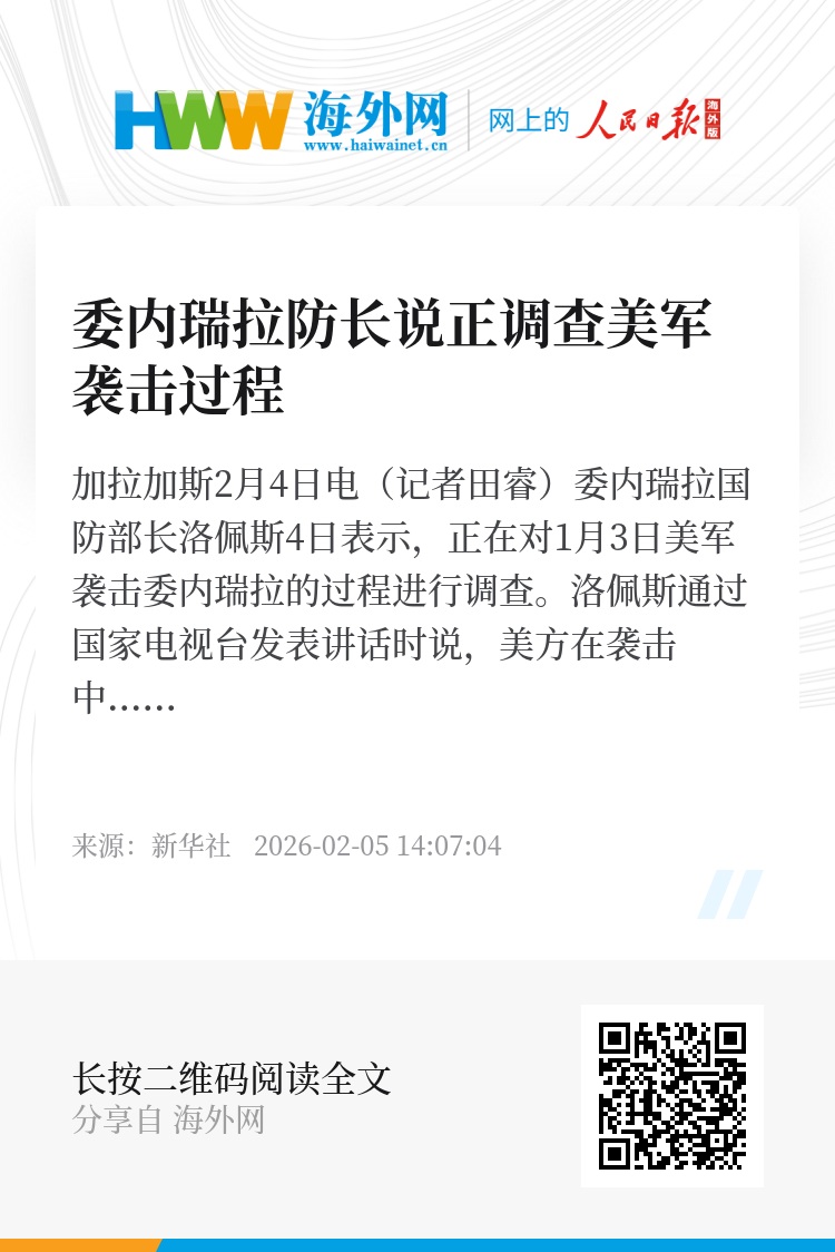 新华社加拉加斯2月4日电(记者田睿)委内瑞拉国防部长洛佩斯4日表示,正在对1月3日美军袭击委内瑞拉的过程进行调查。