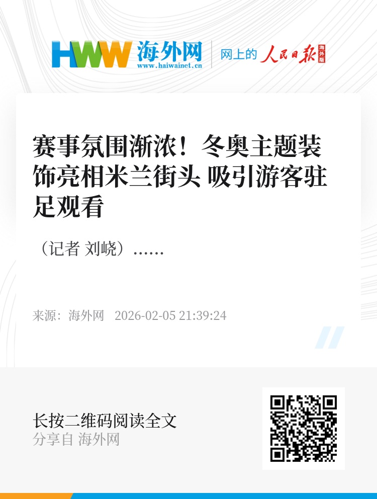 赛事氛围渐浓!冬奥主题装饰亮相米兰街头 吸引游客驻足观看