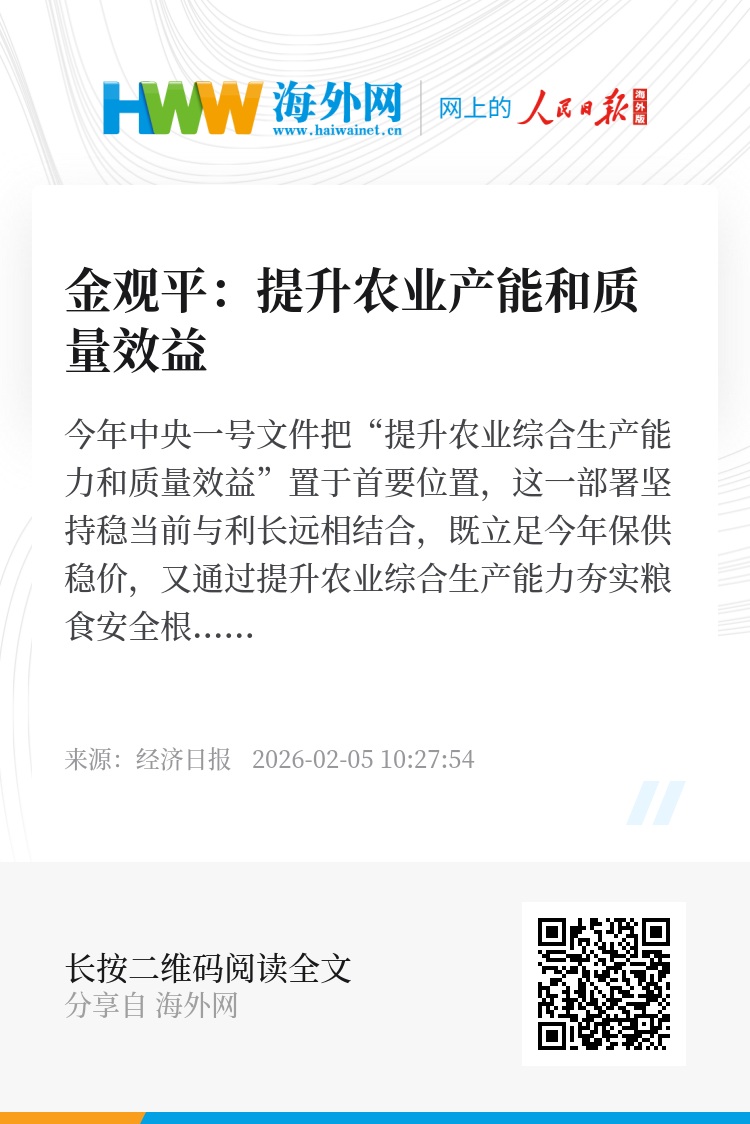 今年中央一号文件把“提升农业综合生产能力和质量效益”置于首要位置,这一部署坚持稳当前与利长远相结合,既立足今年保供稳价,又通过提升农业综合生产能力夯实粮食安全根基,推动农业生产从增产导向转向提质导向,破解农业深层次矛盾,走出一条产出高效、产品安全、资源节约、环境友好的现代农业发展新路。
