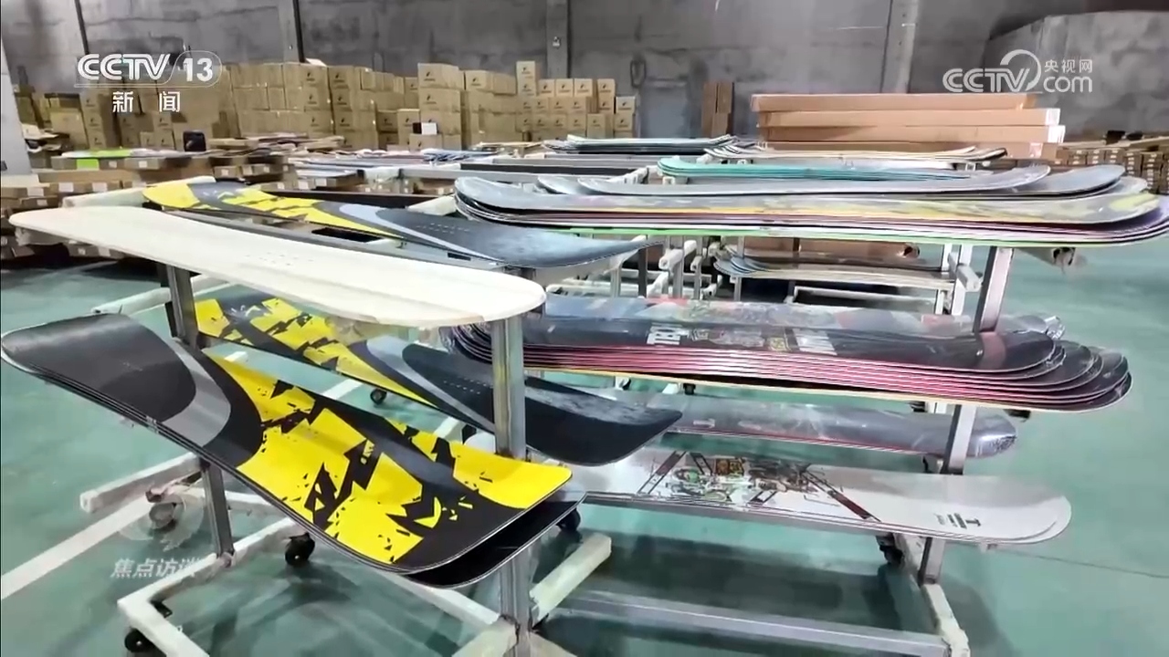 除了大型装备,一些滑雪装备也实现了提质升级。在这家企业的展示库房,记者看到了一款滑雪板,它的外形跟普通滑雪板无异,但是重量却轻了很多。这款新研发的超轻滑雪板,将原先用的碳纤维改为凯夫拉纤维,重量大大减轻,板面耐磨性也大大提升,还不容易沾雪,目前供不应求。