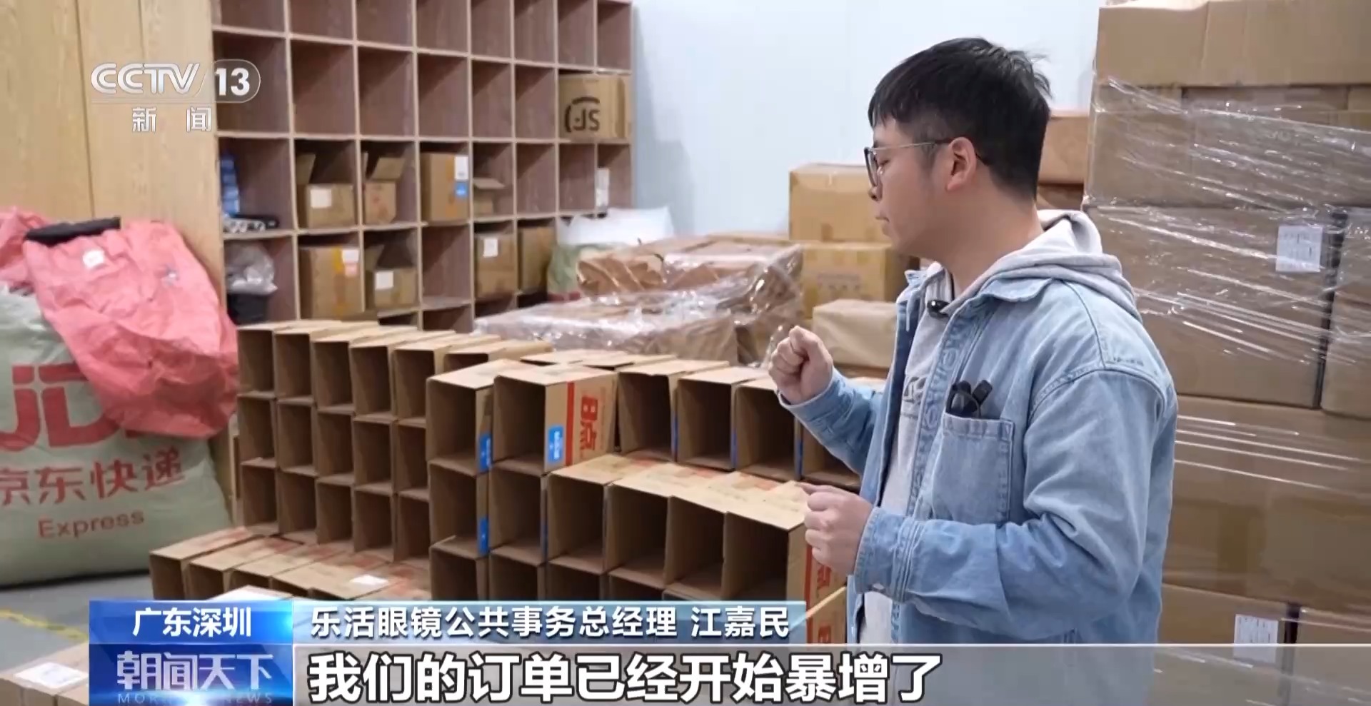 乐活眼镜公共事务总经理 江嘉民:“国补”实施之后,我们的订单已经开始暴增了,这边就是我们今天白天的智能眼镜订单,今天晚上预计还会再增加一倍。