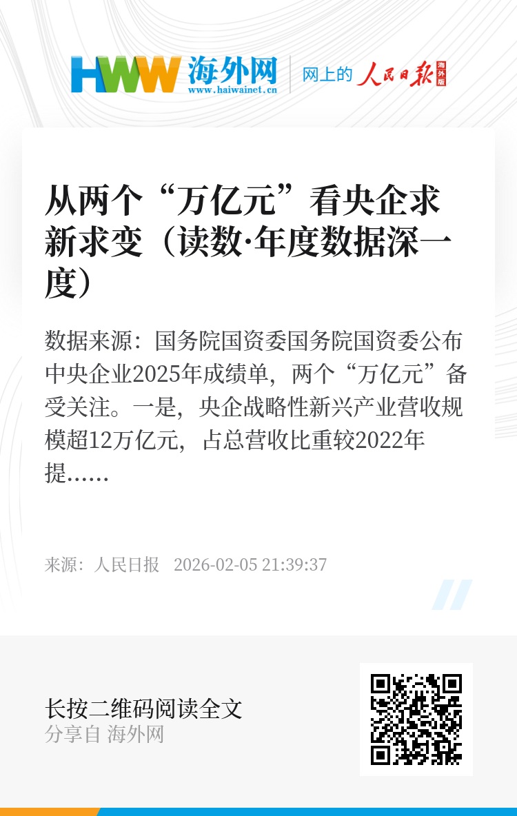今年是“十五五”开局之年。国务院国资委正在研究起草关于推动中央企业培育新兴支柱产业的工作文件,引导中央企业实现从重大项目投资、领军企业培育、关键领域突破到国有经济整体布局优化的跨越式发展。当“国之重器”插上“新质”的翅膀,相信中央企业的“第二曲线”将更加昂扬向上。(李心萍)