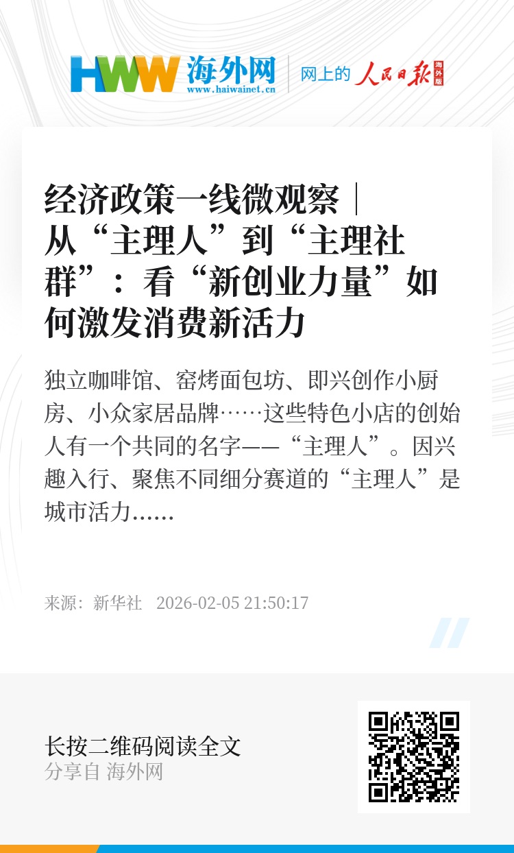 从园区到社区,“主理人”们提供的商品和服务,不只追求销量,更寻找精神共鸣。这股“新创业力量”,正以“小而精”的姿态精准切入细分圈层,让商业生态变得更多元、更有活力。
