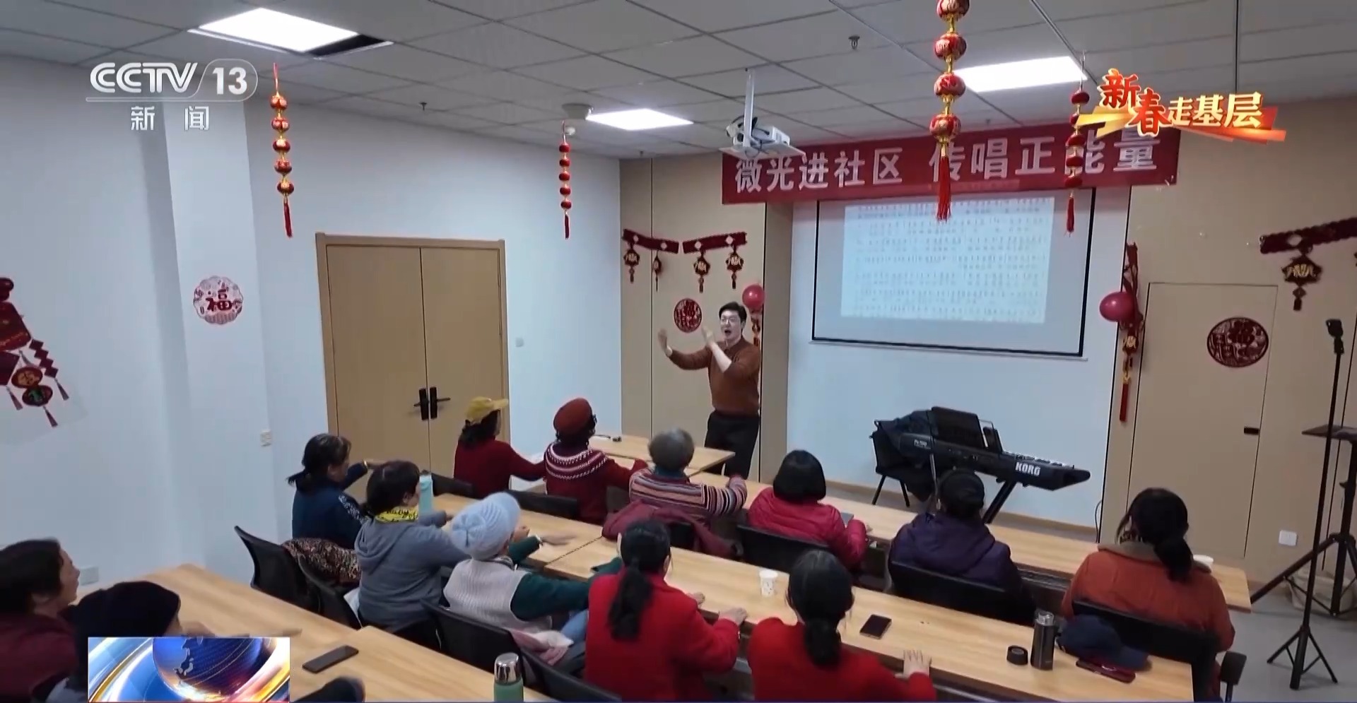 董福顺在大学学的是声乐,在九江市老年大学已经当了9年的音乐老师。这个腊月趁着老年大学放假,他把课堂搬进了社区、村庄和养老院,免费带大家上课。