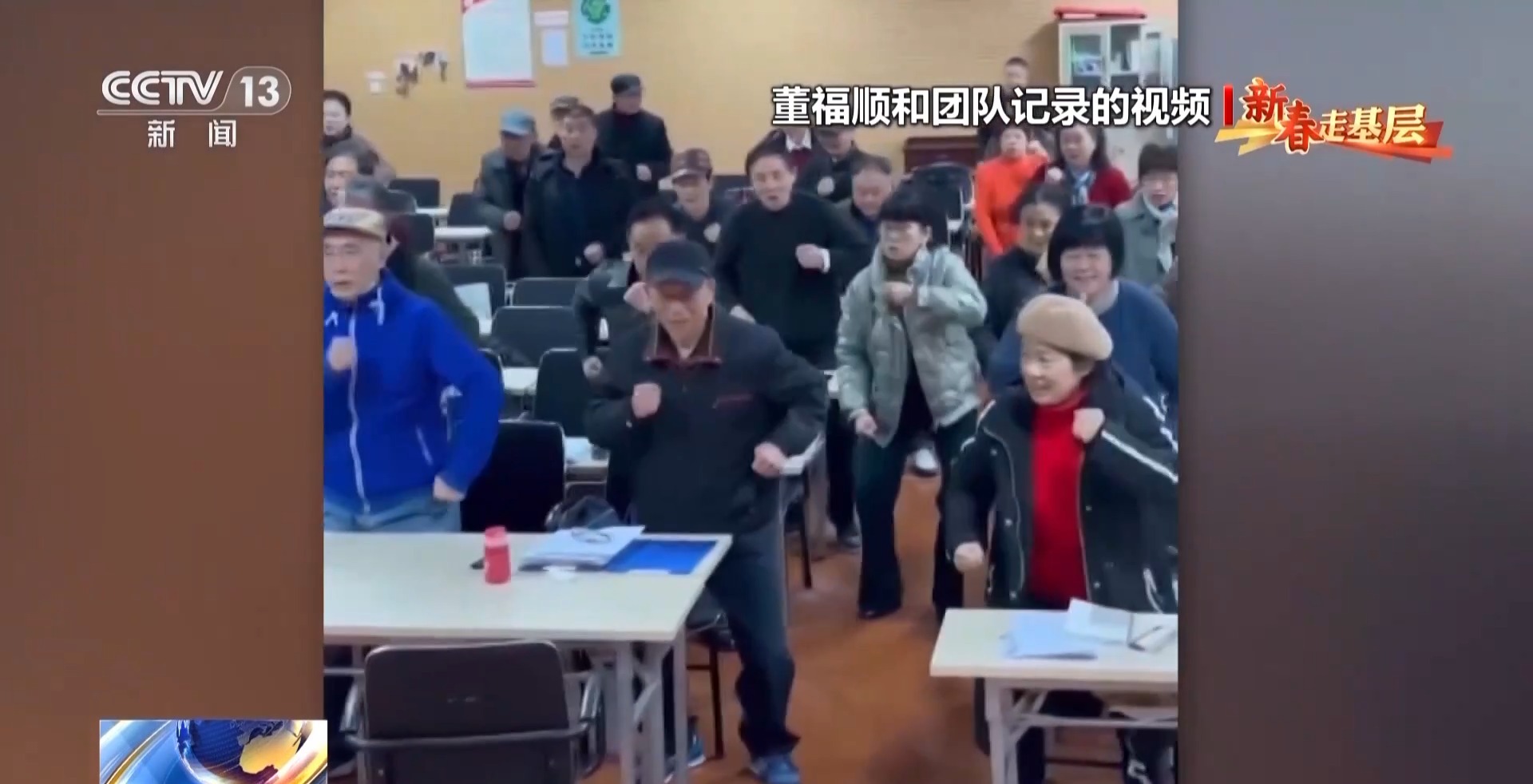 给老人们上课,小董全情投入,即使是冬天,一节课下来,衣服也已经湿透。