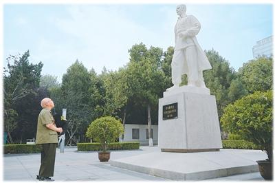 2025年8月20日,刘世钺在华北军区烈士陵园向白求恩雕像敬献鲜花。