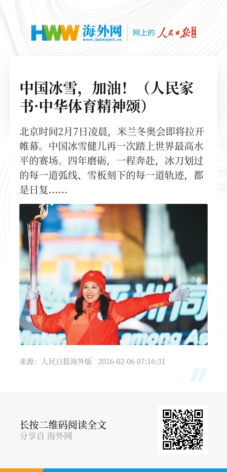 今天,人民家书栏目推出“冬奥家书”,选编多位冬奥冠军与冰雪名将写给米兰冬奥会中国体育代表团运动员的书信。愿这份跨越山海的鼓励和叮咛,成为冰雪健儿踏上赛场的底气,祝愿中国冰雪健儿在冬奥赛场上勇毅争先、为国争光。