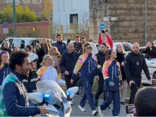 当地时间2月5日,2026年米兰-科尔蒂纳冬奥会火炬米兰站传递正式开启。冬奥圣火传递现场气氛热烈,志愿者们脸上洋溢笑容,路旁民众用手机记录这激动人心的一刻。(记者 刘峣)