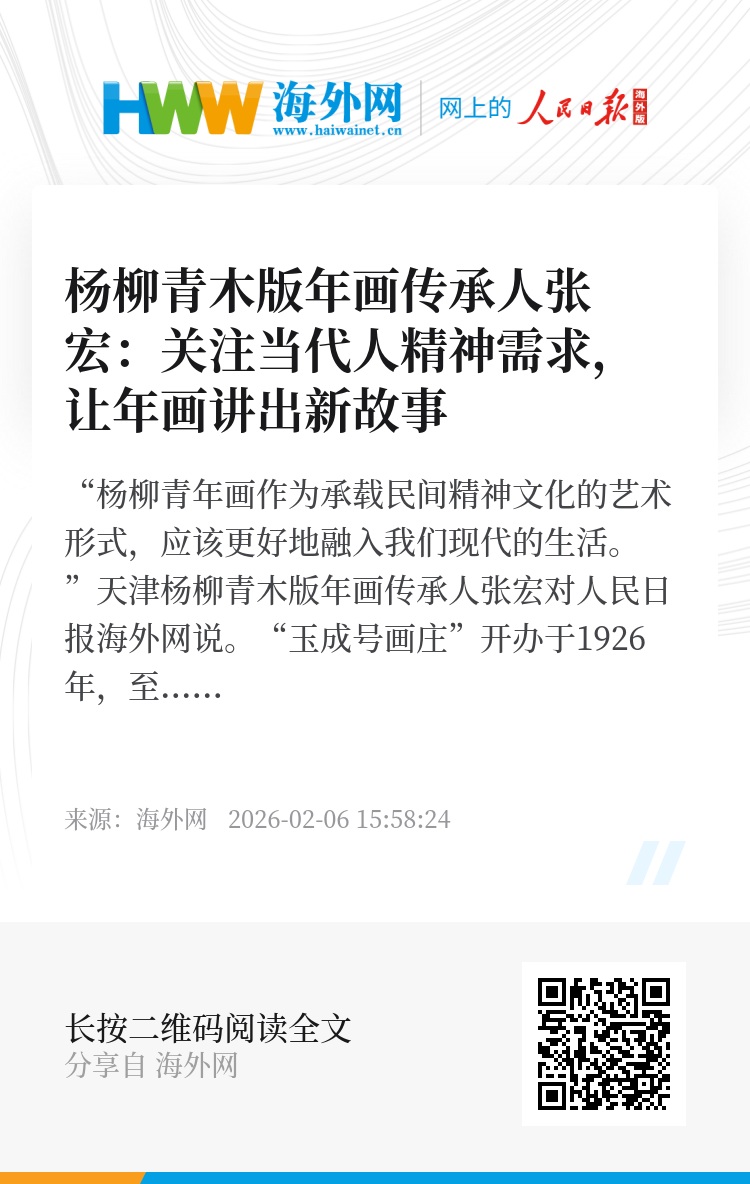 “从传统民俗到当代新生杨柳青年画,以多元表达连接世界,让东方匠心在跨文化交流中绽放光彩。”张宏表示,未来希望能借助新一代传承者的力量,利用新媒体拓展老字号和传统手工艺的影响力。对于杨柳青年画的未来,张宏满怀期待。“愿杨柳青年画守手工之根、融时代之潮,在传承中创新,在日常中生长,让千年匠心活在当下、美向未来。”(海外网 李雪钦 李驿达)