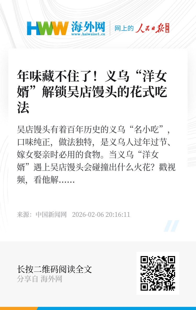 吴店馒头有着百年历史的义乌“名小吃”,口味纯正,做法独特,是义乌人过年过节、嫁女娶亲时必用的食物。当义乌“洋女婿”遇上吴店馒头会碰撞出什么火花?戳视频,看他解锁吴店馒头的花样吃法!