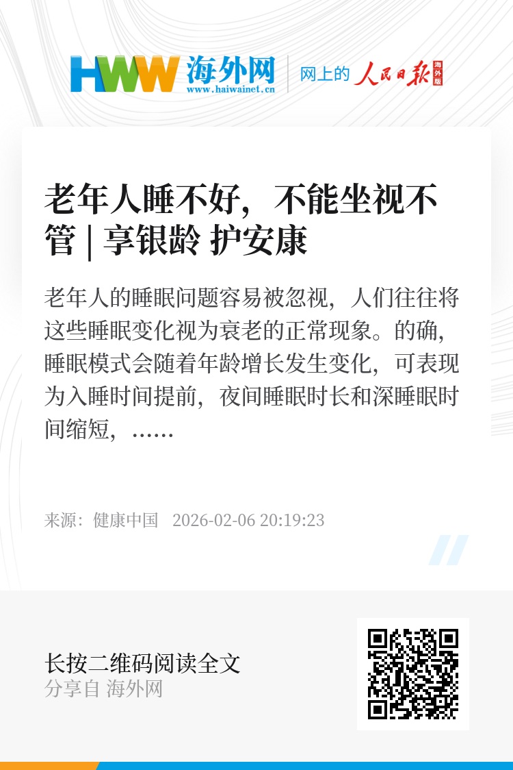 老年人的睡眠问题容易被忽视,人们往往将这些睡眠变化视为衰老的正常现象。
