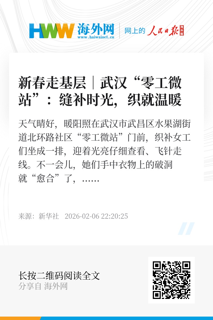 一方天地,承载着手艺人的生计,更安放着她们的尊严与归属。“武汉离家不远,家人也都在附近工作,干干织补,还能贴补点家用。街道和社区不久前还发了新春慰问礼包,感觉很温暖,日子有奔头。”黎亮感慨道。(记者廖君、熊翔鹤)