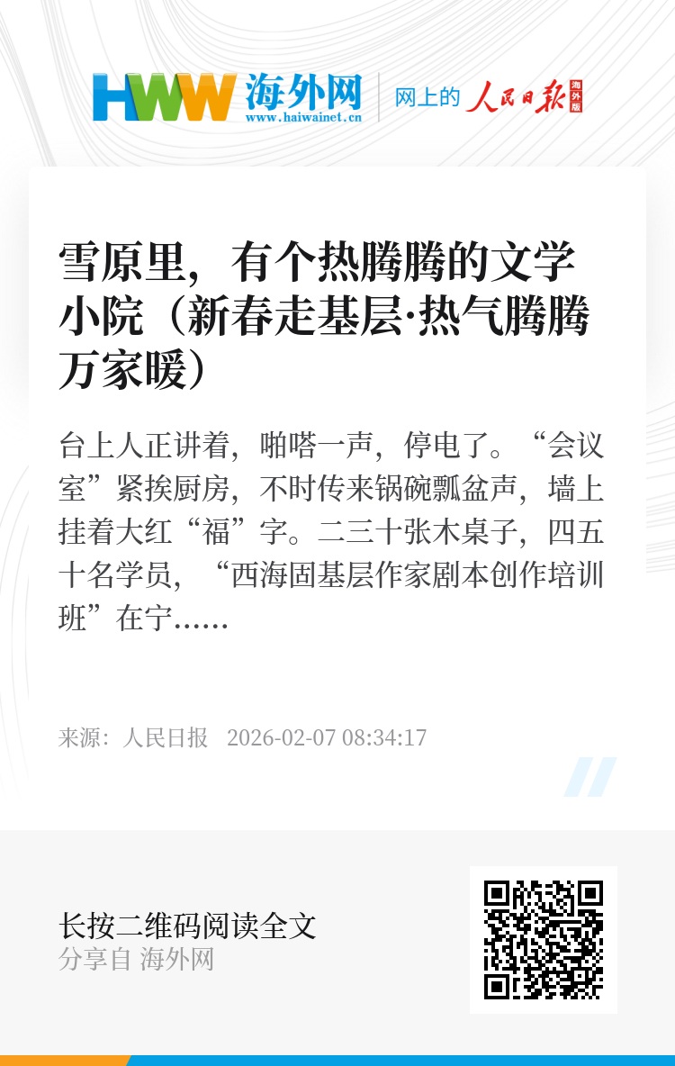 离开杨河时,雪后初霁,西海固大地化作茫茫雪原,银装素裹。史静波的话萦绕耳边:“文学,真是件温暖的事!”(记者 徐元锋)