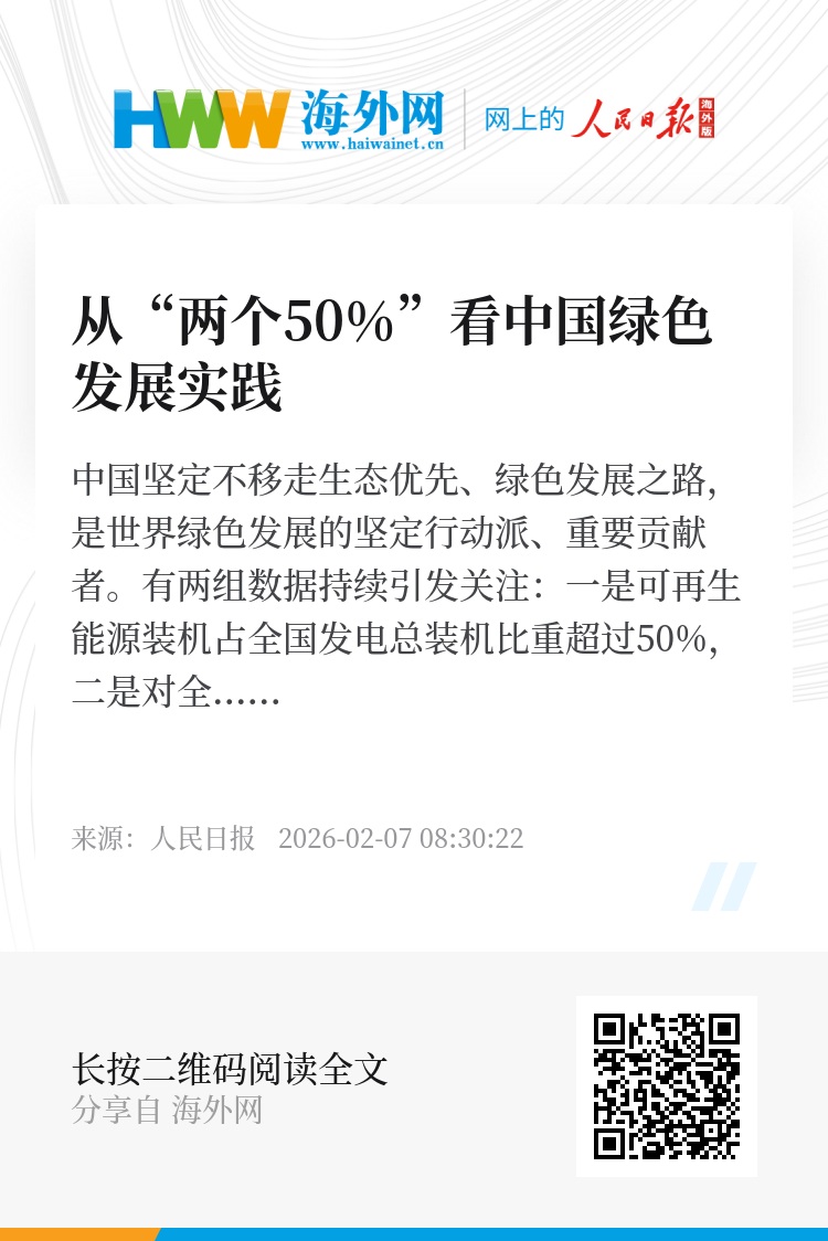 中国坚定不移走生态优先、绿色发展之路,是世界绿色发展的坚定行动派、重要贡献者。有两组数据持续引发关注:一是可再生能源装机占全国发电总装机比重超过50%,二是对全球可再生能源新增装机的贡献持续超过50%。“两个50%”是中国绿色发展成就的缩影,事实上,这一举世瞩目的成就不是从天而降的,也不是纯靠市场调节自然发生的。与新时代中国发展诸多成就一样,这是坚持有效市场和有为政府相结合,持续激发市场活力、制度活力和社会创造力的结果。