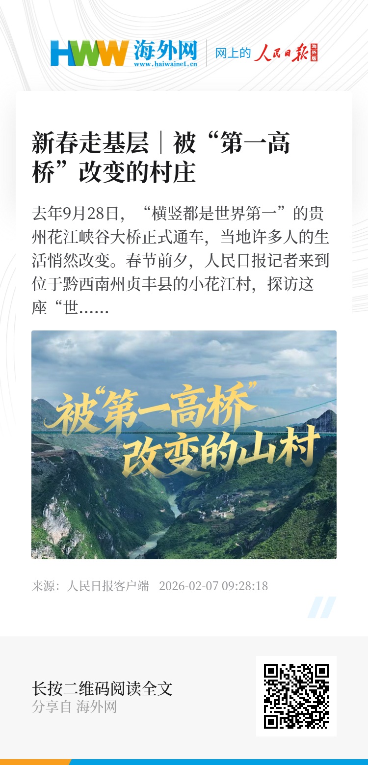 春节前夕,人民日报记者来到位于黔西南州贞丰县的小花江村,探访这座“世界第一高桥”给一个小村庄带来的新变化。