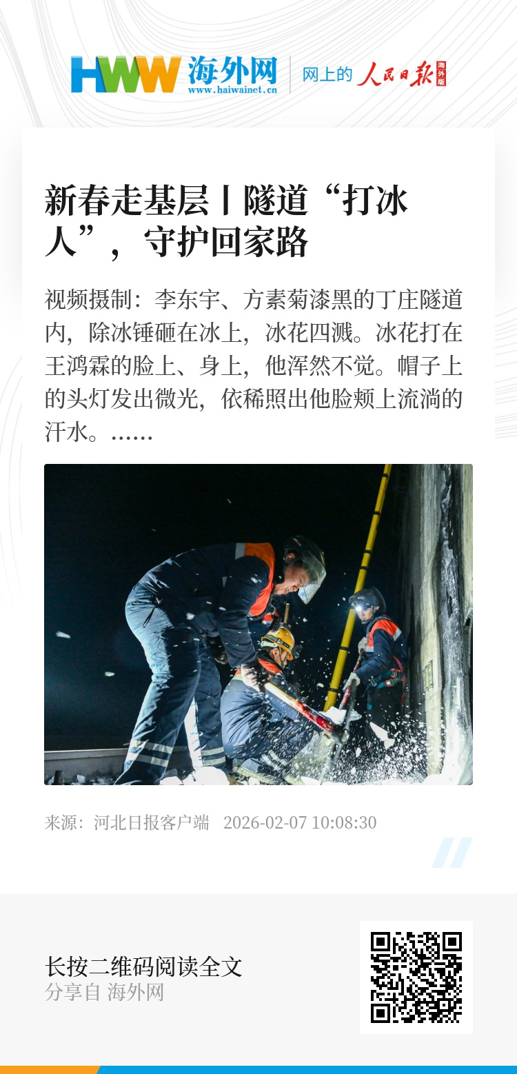 “今天算是暖和的,外面气温高,隧道内也不算冷。”王鸿霖说,在隧道除冰,寒冷对他们是最大的考验。冬季外面气温零下10摄氏度时,隧道内的气温能到零下20多摄氏度,他们只能靠多穿衣服来维持温度。但在除冰过程中,由于活动量大,不一会儿里面的衣服就被汗水湿透了,再一吹过堂风,那种寒冷是彻骨的。