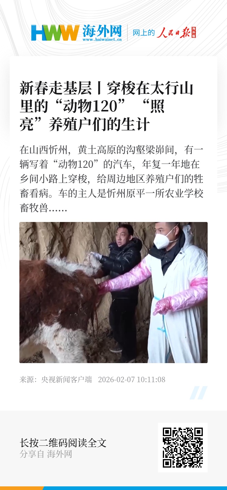 二十多年,近万次出诊,王老师的“动物120”,跑过了高原,跑进了乡亲们的心坎里。他守护的,从来不只是牛羊。当老乡硬塞来一篮土鸡蛋,当小牛踉跄着站起来吮吸母乳……这些瞬间,让所有的奔波都有了温度。