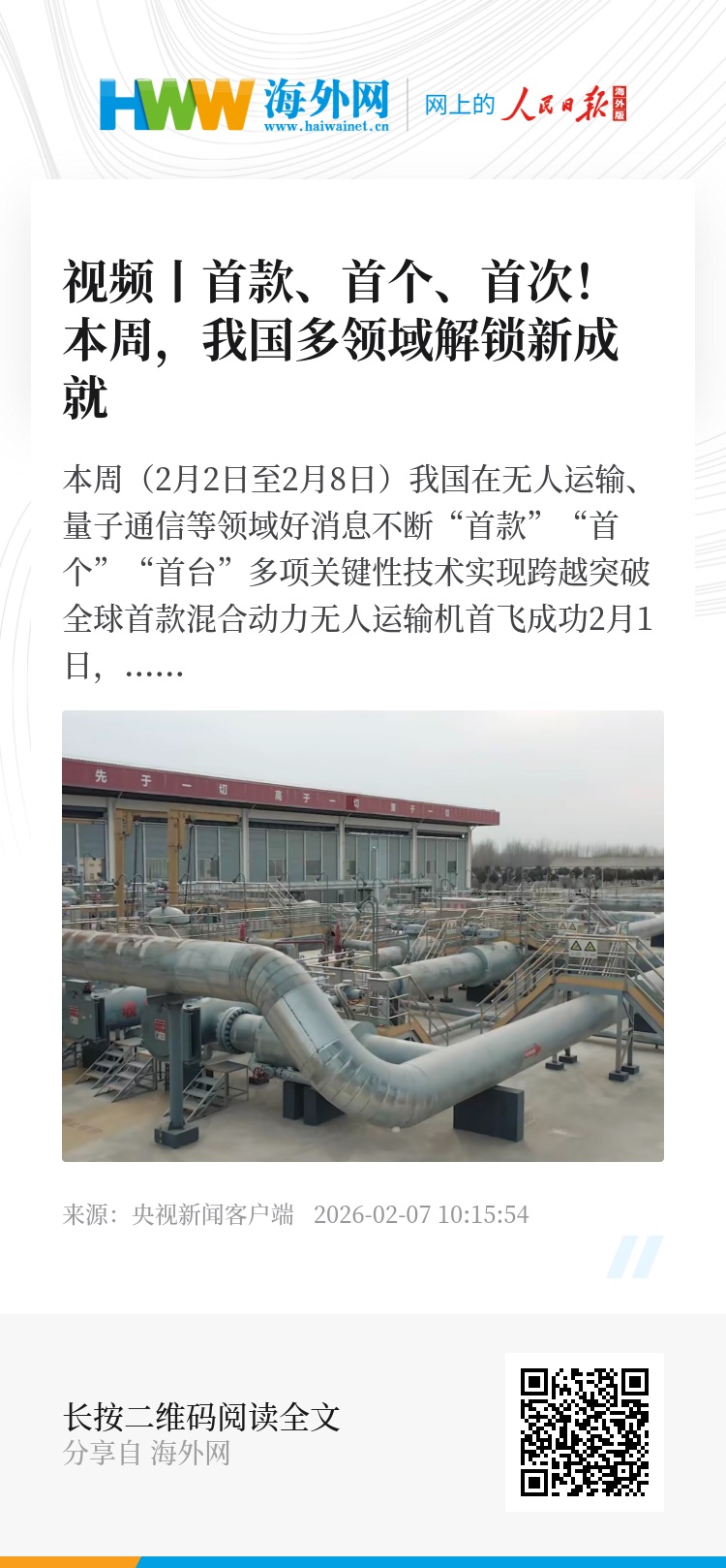 2月5日,国内首个长输管道改输二氧化碳现场试验在河南濮阳顺利完成,标志着我国在存量长输管道资源化利用领域完成从理论研究到工程实践的关键跨越,为碳捕集、利用与封存产业规模化推进提供了可复制、可推广的工程示范。