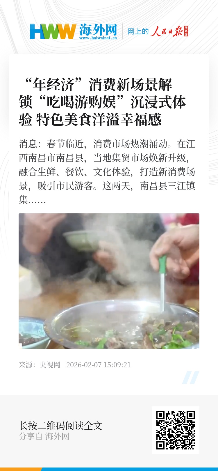 央视网消息:春节临近,消费市场热潮涌动。在江西南昌市南昌县,当地集贸市场焕新升级,融合生鲜、餐饮、文化体验,打造新消费场景,吸引市民游客。