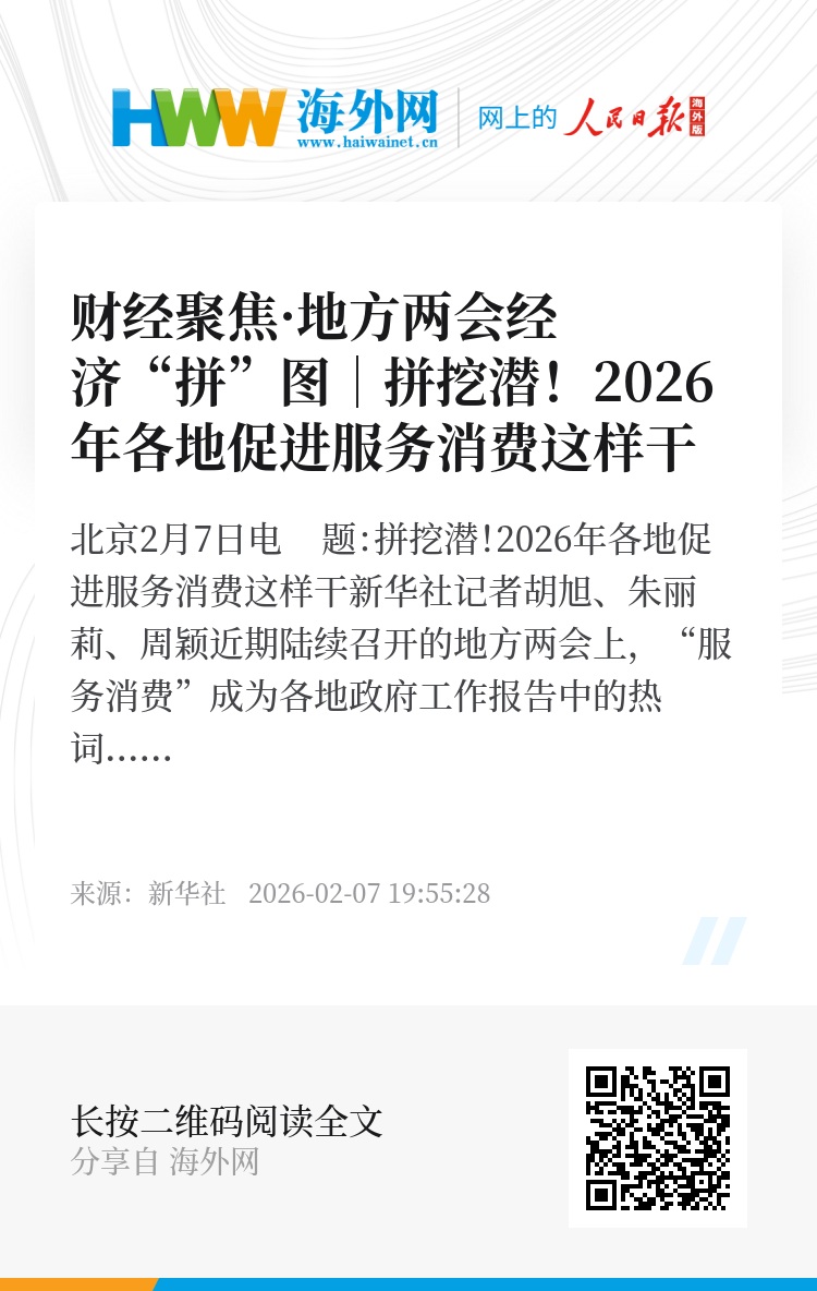 新华社北京2月7日电 题:拼挖潜!2026年各地促进服务消费这样干