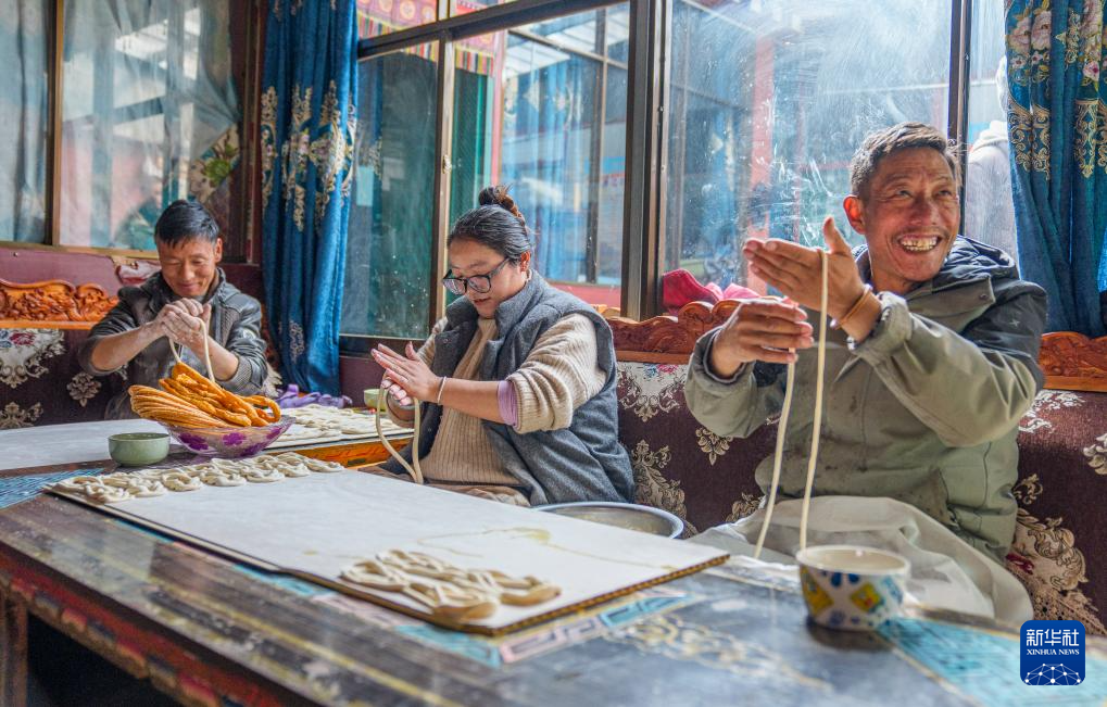2月5日,玉麦乡村民在家里做卡塞(一种传统油炸面食),迎接即将到来的藏历新年。新华社记者 丁增尼达 摄