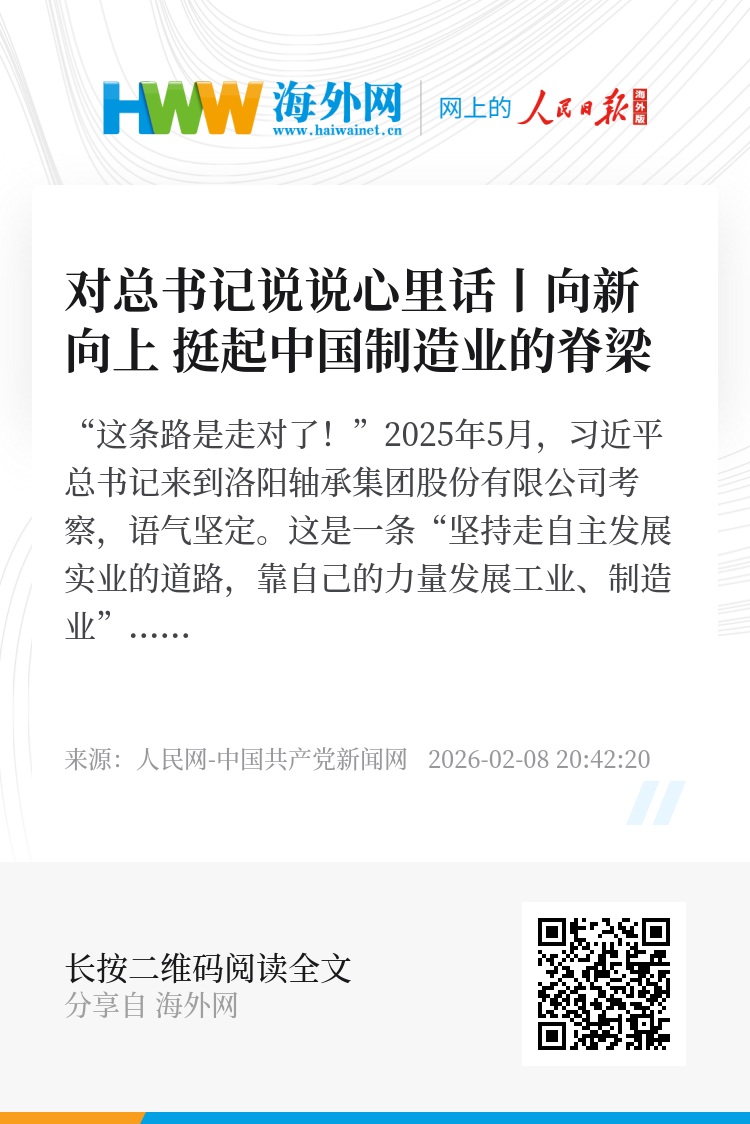 洛轴的向新向上发展,也正是中国一路走来的模样。截至2025年,中国制造业总体规模连续15年保持全球第一,产业门类最齐全、产业体系最完整。
