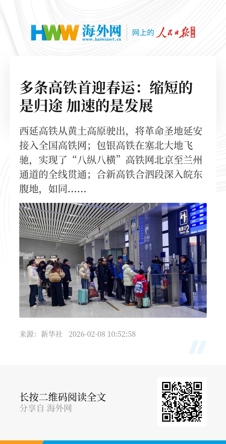 三条新线所折射的变迁,正是中国不断发展进步的生动缩影。路网延伸之处,归途更短,团圆更近,发展的脉动也愈发强劲。(记者付瑞霞、李志鹏、胡锐)