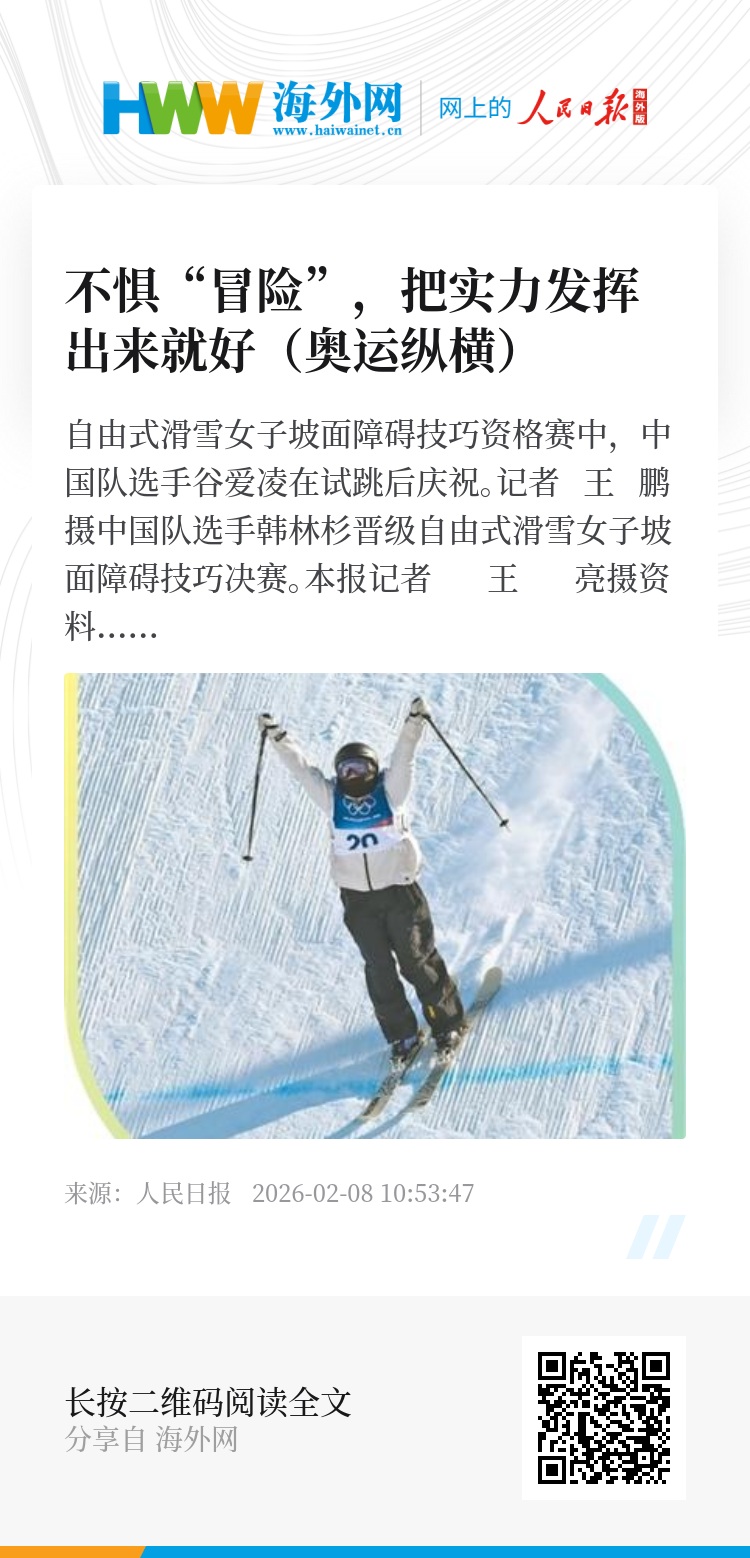 展望将于当地时间2月9日进行的决赛,刘梦婷说:“我的目标是平安完赛,把动作做得干净一点、漂亮一点。”韩林杉说:“我把自己的实力发挥出来就好,压力太大反而影响发挥。”