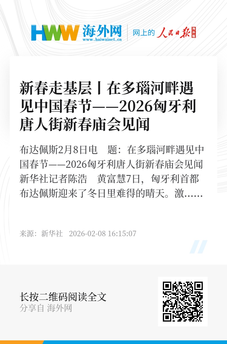 新华社布达佩斯2月8日电 题:在多瑙河畔遇见中国春节——2026匈牙利唐人街新春庙会见闻