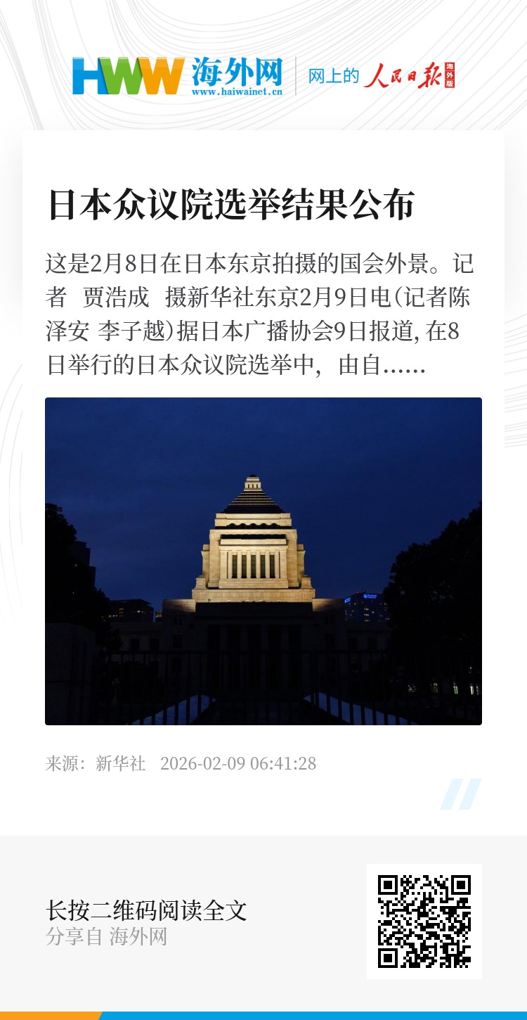新华社东京2月9日电(记者陈泽安 李子越)据日本广播协会9日报道,在8日举行的日本众议院选举中,由自民党和日本维新会组成的执政联盟获得过半数议席。