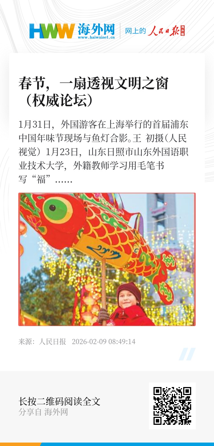 春节或许可以成为一座连接不同文明的桥梁。在这座桥上,人们不再急于划分“我们”与“他们”,而是先看见彼此作为“人”的共性。这份基于共同情感的联结,正为人类文明交流互鉴提供深远而持久的价值。