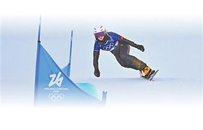 中国队选手毕野在单板滑雪男子平行大回转预赛中。新华社记者 胡超摄