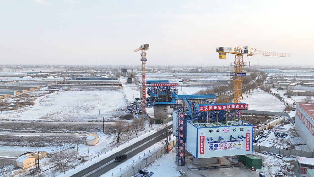 在中铁二十一局集团有限公司所建项目处,机器轰鸣与焊花飞溅交织,钢铁巨臂缓缓运转,巨大的桥墩向远方延展开来。