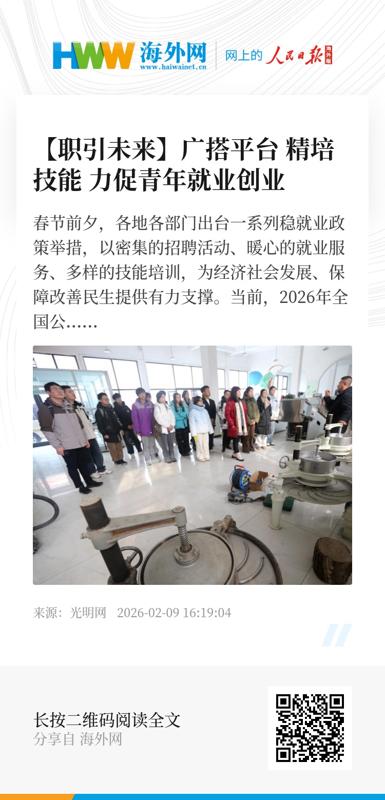 春节前夕,各地各部门出台一系列稳就业政策举措,以密集的招聘活动、暖心的就业服务、多样的技能培训,为经济社会发展、保障改善民生提供有力支撑。当前,2026年全国公共就业招聘专项活动、“职引未来——全国人力资源市场高校毕业生就业服务专项行动”等正在全国持续开展,助力高校毕业生等青年群体走稳就业创业之路。