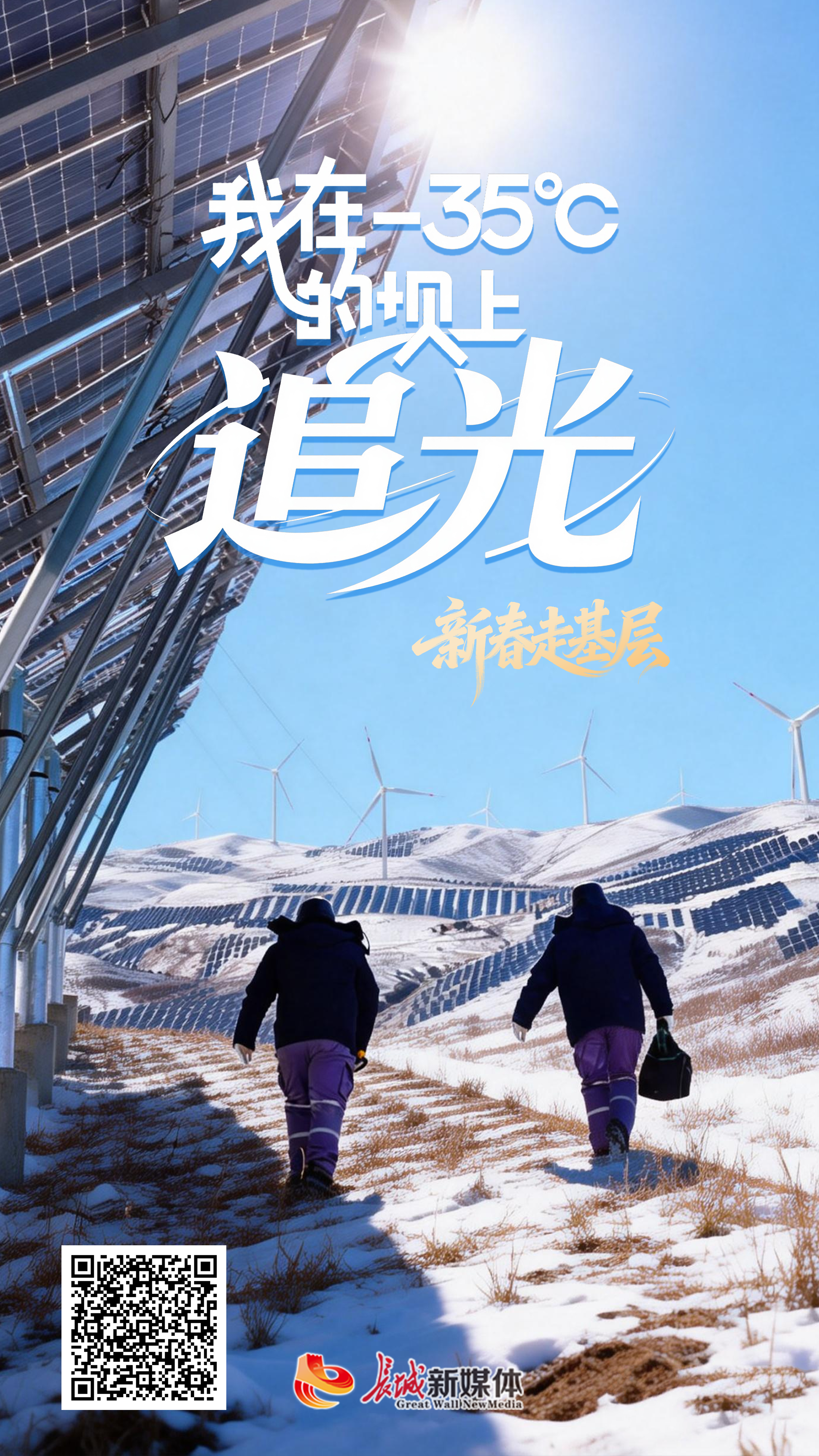 这里冬季最低气温常跌破-30℃,体感温度可达-40℃以下,但有一群“追光”的人一直坚守在这里。他们是一个7人班组,每月都穿行于绵延2.6万亩的光伏方阵之间,巡检145.4万块光伏板,守护这片万家灯火。