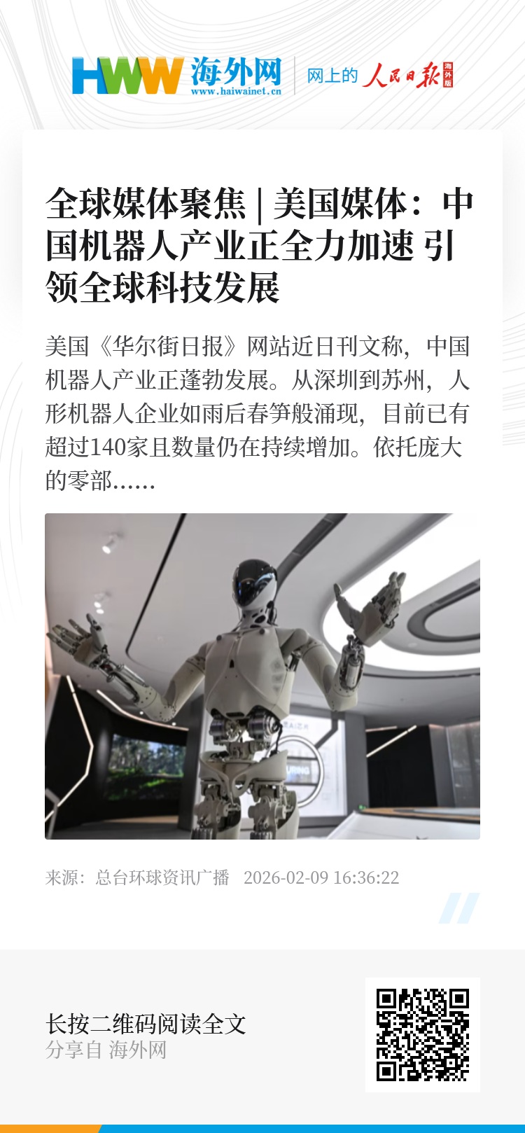 文章最后援引一家科技公司负责人的话说,“政府政策是打开市场的动力,而具身人工智能初创企业则是推动市场发展的引擎。中国深厚的技术人才储备与政府的有力支持,使其成为创业的理想之地。”