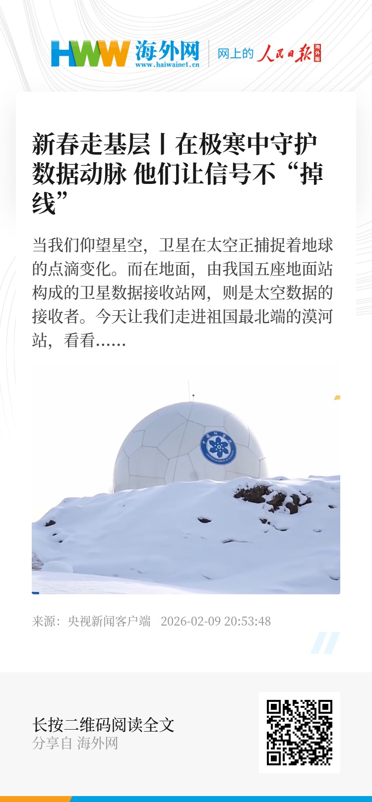 中国科学院空天信息创新研究院 中国遥感卫星地面站漠河站站长 施胜浦:大伙儿都团结在一起,圆满地完成国家给我们的数据接收任务,这也是对我们2026年的一个期许。 我们五站同心、天地相连,这是专属于我们地面站的团圆的意义。