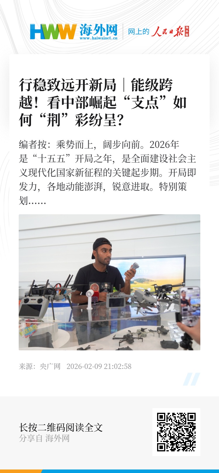 编者按:乘势而上,阔步向前。2026年是“十五五”开局之年,是全面建设社会主义现代化国家新征程的关键起步期。开局即发力,各地动能澎湃,锐意进取。央广网特别策划推出《行稳致远开新局》,讲述过去五年来各地迎难而上、砥砺奋进的万千气象,呈现经济实力、科技实力、综合国力跃上新台阶背后的发展肌理,以走在前、作示范、挑大梁的责任担当和发展韧性,为“十五五”开好局、起好步凝心聚力,不断开创中国式现代化建设新局面。