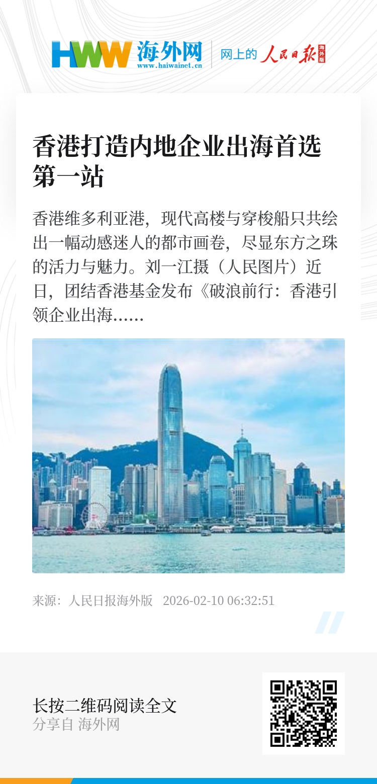近日,团结香港基金发布《破浪前行:香港引领企业出海新时代》政策研究报告。报告显示,内地企业正迈向以“科技出海”“品牌出海”新阶段,而香港凭借自由开放的资本市场、连接全球的商贸网络等多方面优势,可以打造成为企业建立出海第一站的首选地。