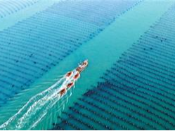 1月27日,山东省荣成市爱伦湾海洋牧场,养殖工人驾驶船只收获小海带,投放各地春节市场。