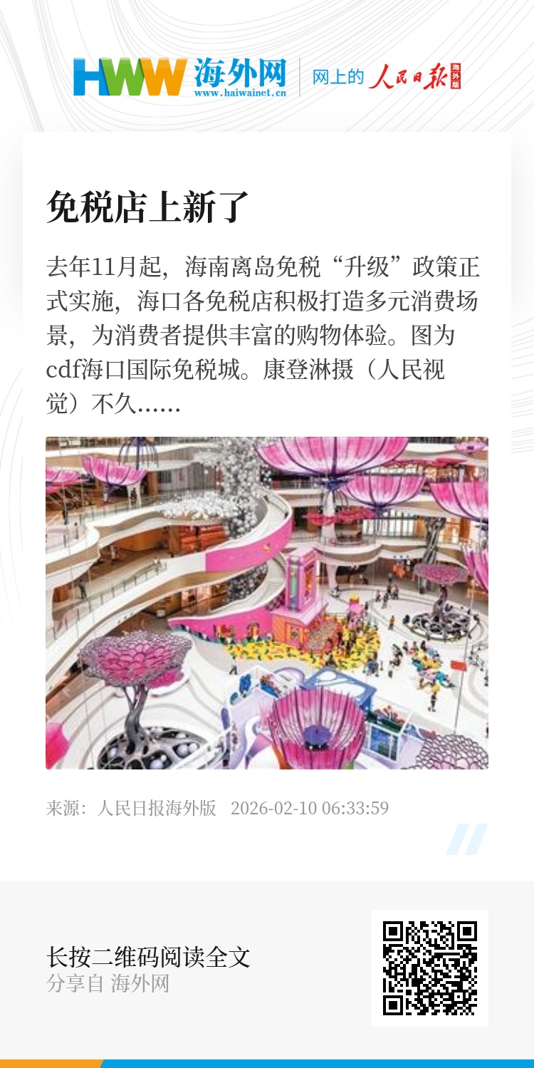 眼下,“去中国旅游”在海外成为潮流。国家移民管理局发布的最新数据显示,2025年,免签入境外国人3008万人次、占入境外国人73.1%、同比上升49.5%。口岸进境免税店,为这些入境中国的海外消费者提供了消费场所,有望扩大入境消费规模。