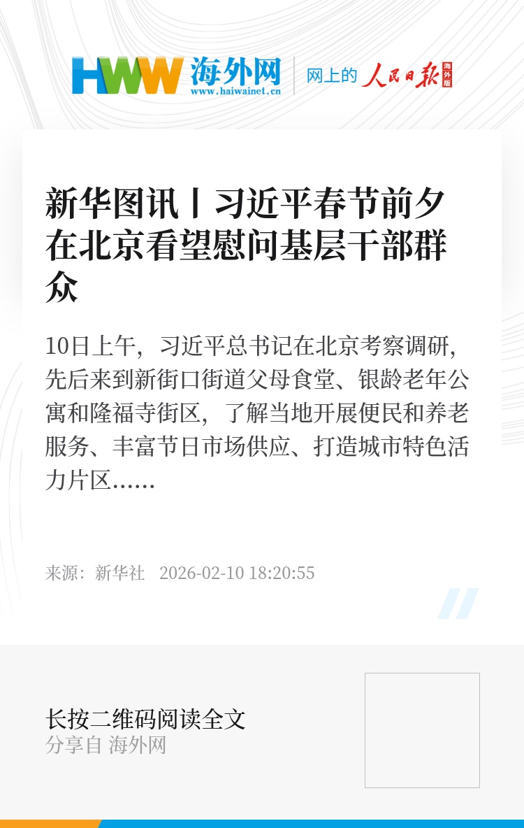 10日上午,习近平总书记在北京考察调研,先后来到新街口街道父母食堂、银龄老年公寓和隆福寺街区,了解当地开展便民和养老服务、丰富节日市场供应、打造城市特色活力片区等情况,看望慰问基层干部群众。
