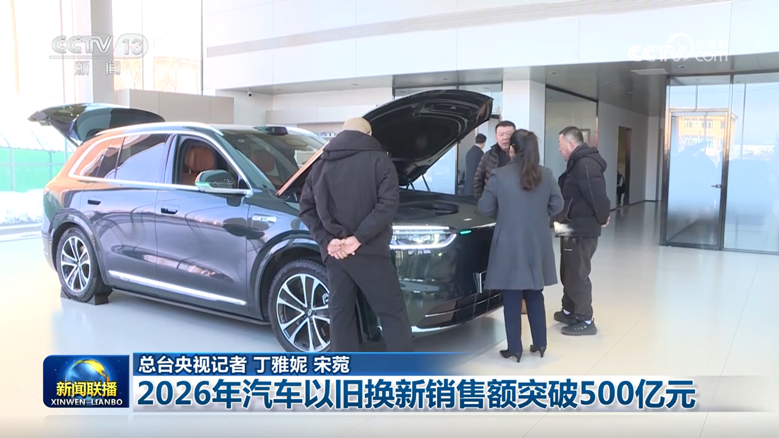 央视网消息(新闻联播):记者从商务部了解到,截至2月5日,2026年汽车以旧换新补贴申请达33.5万份,带动新车销售537.7亿元。
