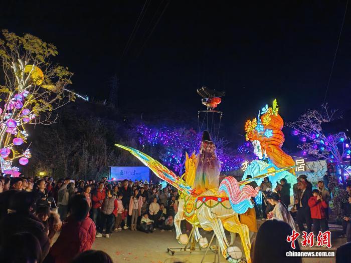 中新社广东茂名2月9日电(梁盛 梁晶晶)2月8日至3月22日,广东知名侨乡茂名信宜市举办大型花灯节。该花灯节长达43天,横跨春节、元宵节等重大节日,当地市民及一众返乡省亲的海外游子,漫步在绚丽多彩的灯海里,体验家乡浓浓的年味。