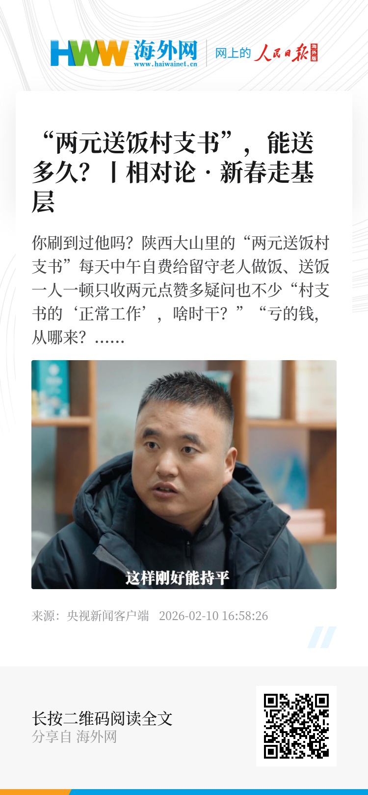 △点击视频,看“两元送饭村支书”,能送多久?
