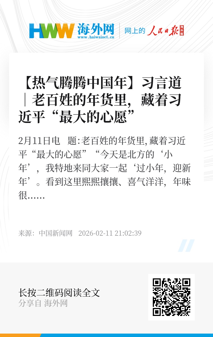 中新网2月11日电 题:老百姓的年货里,藏着习近平“最大的心愿”