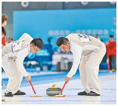 参赛选手在冰壶群众组比赛中。